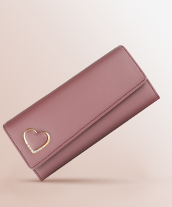 The wallet’s design is both elegant and chic. The heart-shaped lock is a delightful touch that adds a playful yet sophisticated element to the overall look. The color is a rich, deep mauve that pairs well with a variety of outfits, making it versatile for both casual and formal occasions.