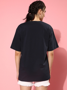 Be the first to review “JUNEBERRY Printed, Graphic Print Women Round Neck Navy Blue T-Shirt”