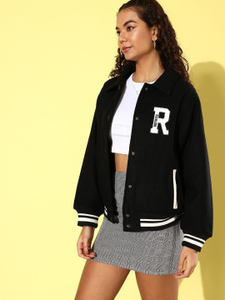 Pattern:Self Design,SuitableFor:Western Wear,FabricPolyester,Type:Varsity Jacket